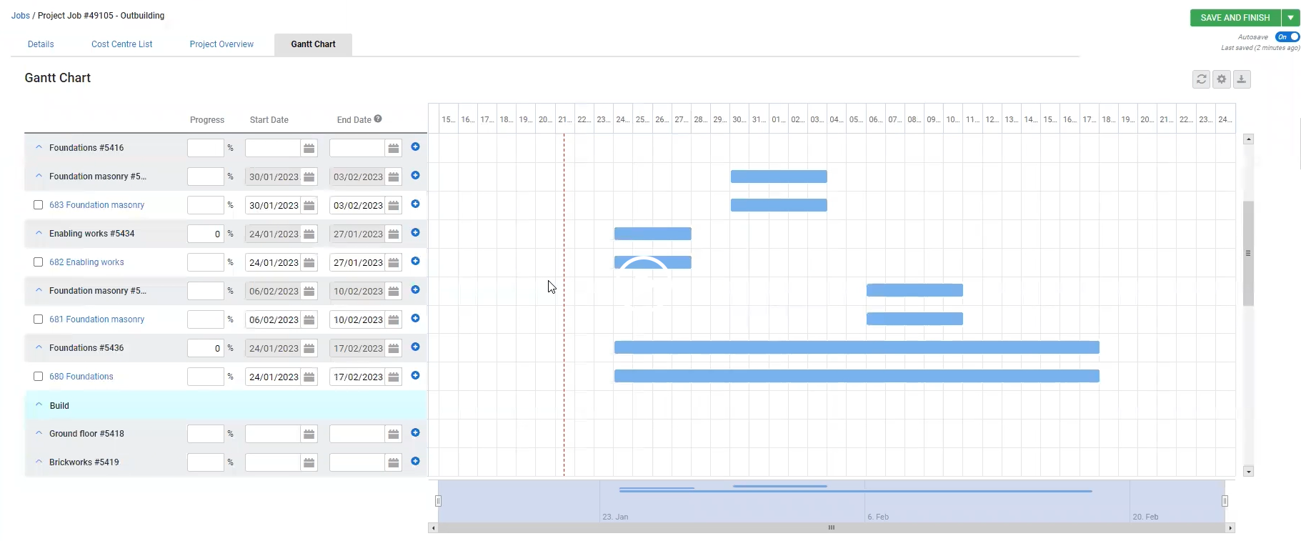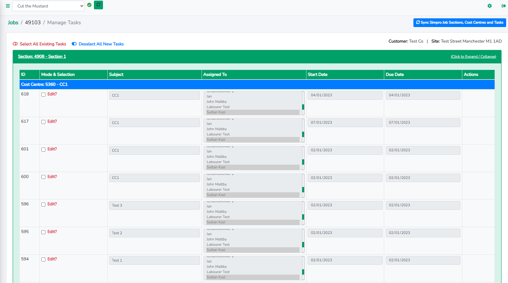 Our task creation system makes it easier to use Gantt charts in Simpro. Instead of having to create tasks individually, we have created a single page with all your cost centers so you can allocated them to staff and add start and end dates. A single click means your Gantt charts get populated with the data you need.