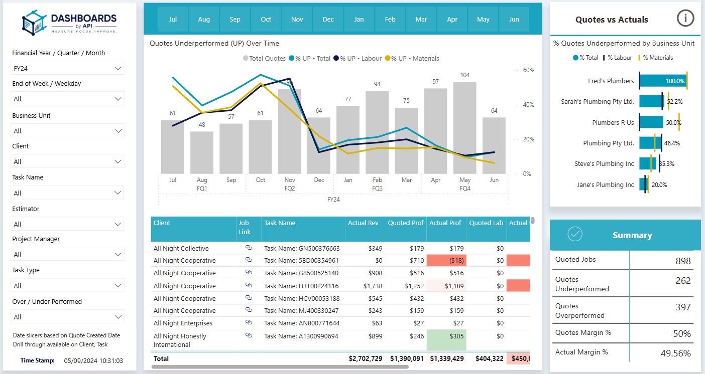 Dashboards by API is built around best-practice usage of Simpro. In most cases, it will work seamlessly with how you're already using the system. However, to ensure all reports deliver accurate insights, some small setup adjustments may be required. You can find step-by-step setup instructions in our Resources section.