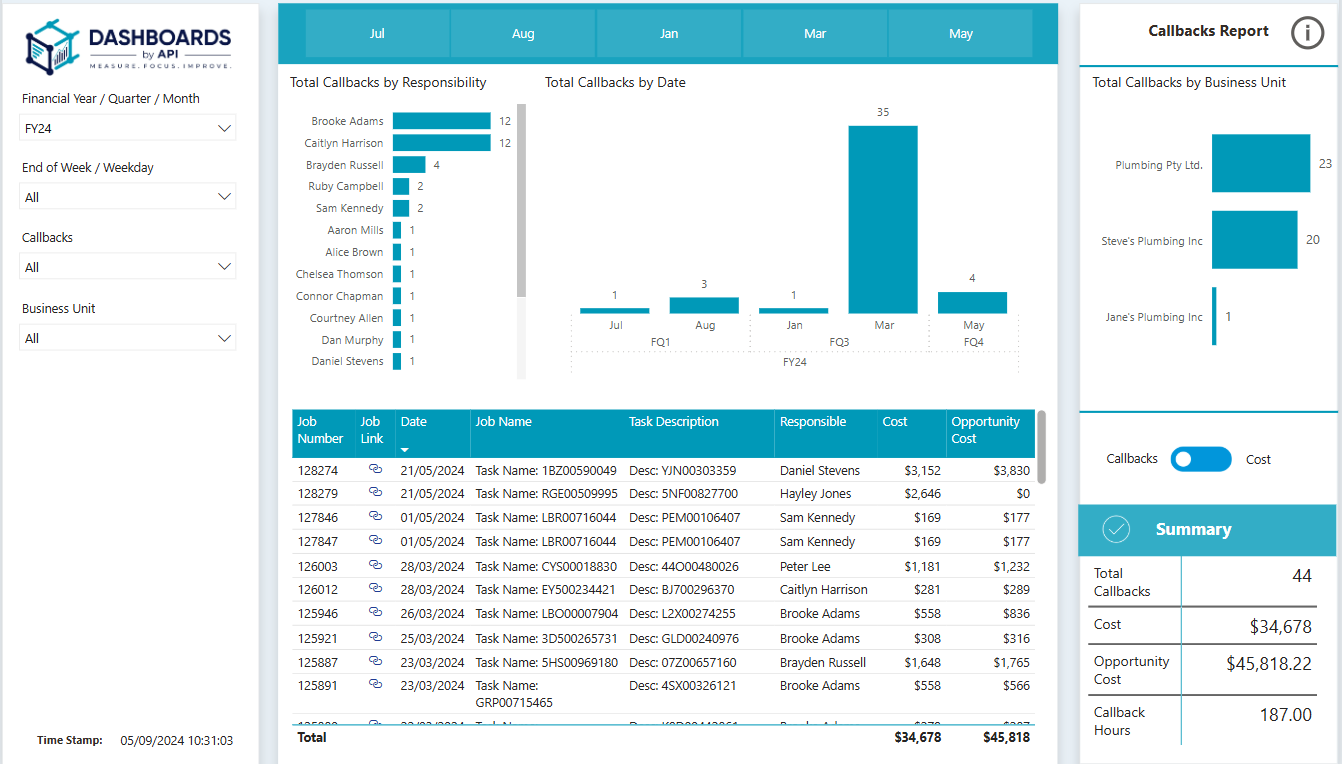 Built on years of experience in the trade sector, Dashboards by API goes far beyond basic reporting. We deliver complex, well-defined metrics that reveal deep insights into job profitability, callback costs, team performance, operational efficiency, and more, delivering insights you simply won’t find anywhere else, that will truly move the needle in your business.