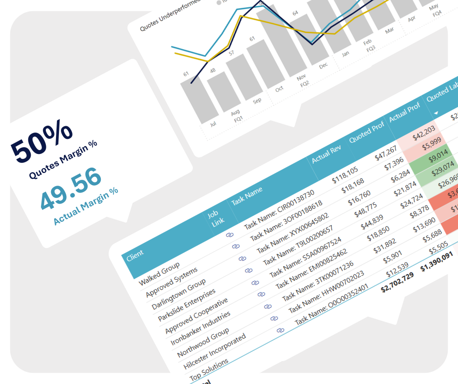 Compares quoted job costs to actual costs and profit for fully invoiced jobs. This makes sure you’re invoicing correctly and helps you fine-tune future quotes to keep your jobs profitable. -