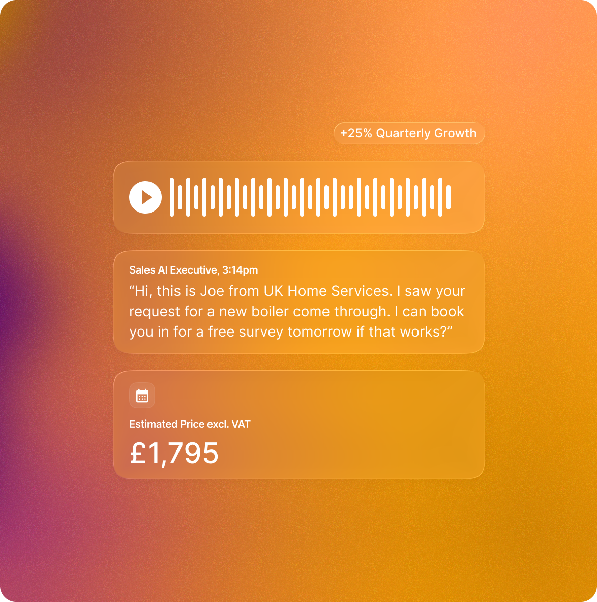 Our AI Sales Executive grows your business. Calling leads within seconds of enquiry and following up with quote reminders, these AI Agents help you close more business with a stronger pipeline.