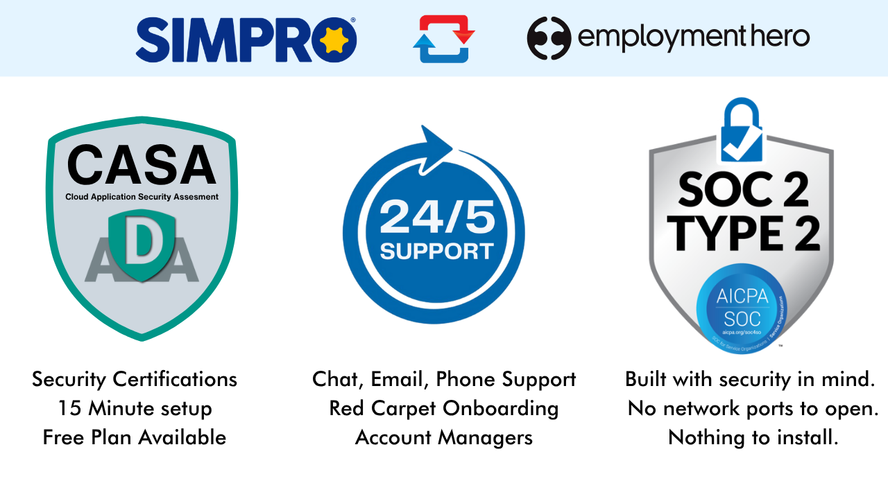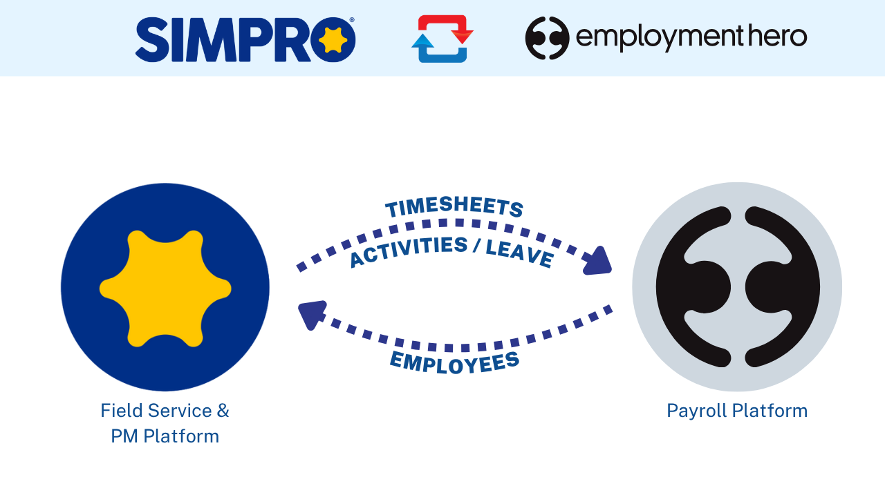 Seamlessly connect your job management and HR systems with our powerful Simpro - Employment Hero Payroll Integration. Designed for businesses that want to eliminate manual data entry, reduce payroll errors, and streamline workforce management, this integration ensures that your operational and HR data stay perfectly in sync -automatically.