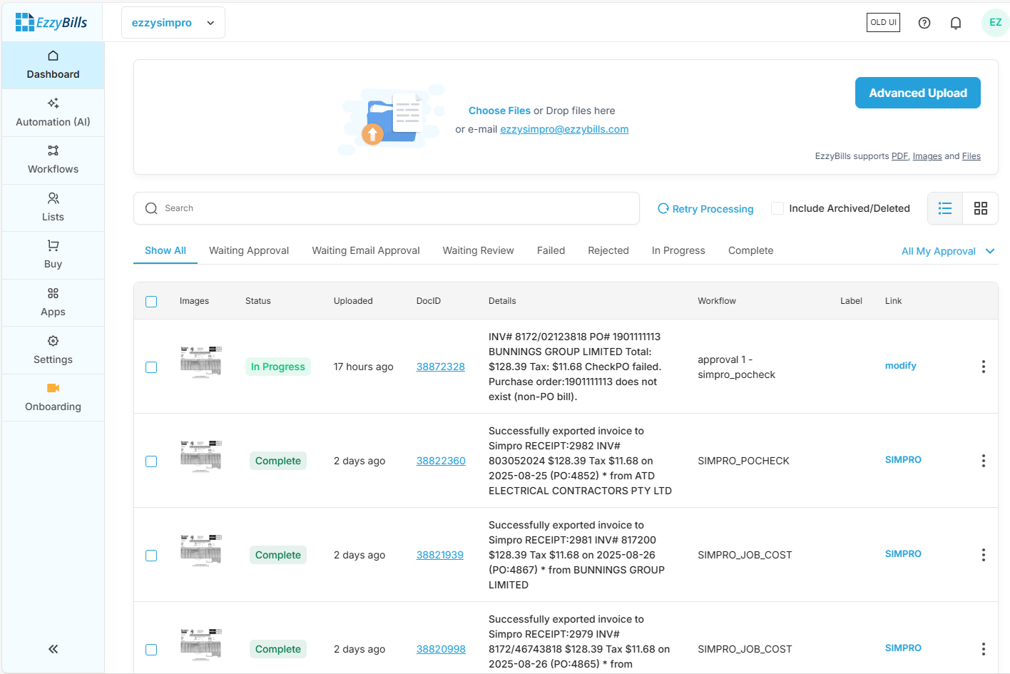 Experience the power of automated invoice processing with EzzyBills and Simpro integration and take your business efficiency to new heights.