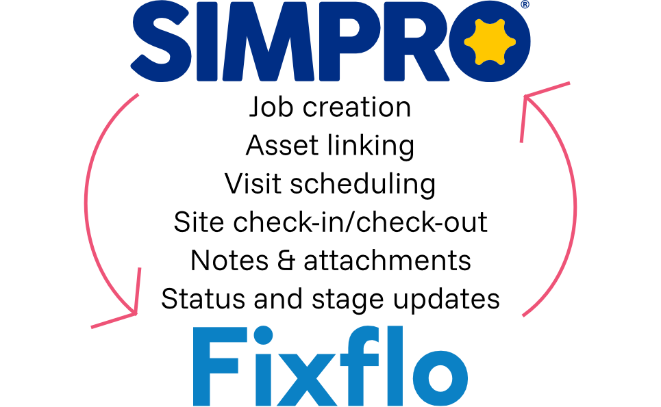 Sync jobs between Simpro and Fixflo with a comprehensive and configurable two-way software integration from Ferrio. Stop wasting time double-keying the same info into two systems and deliver instantaneous updates to your clients.