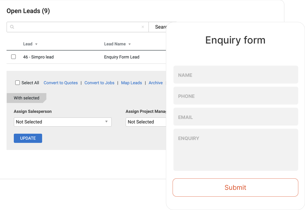 Simpro booking forms without any additional tools.
