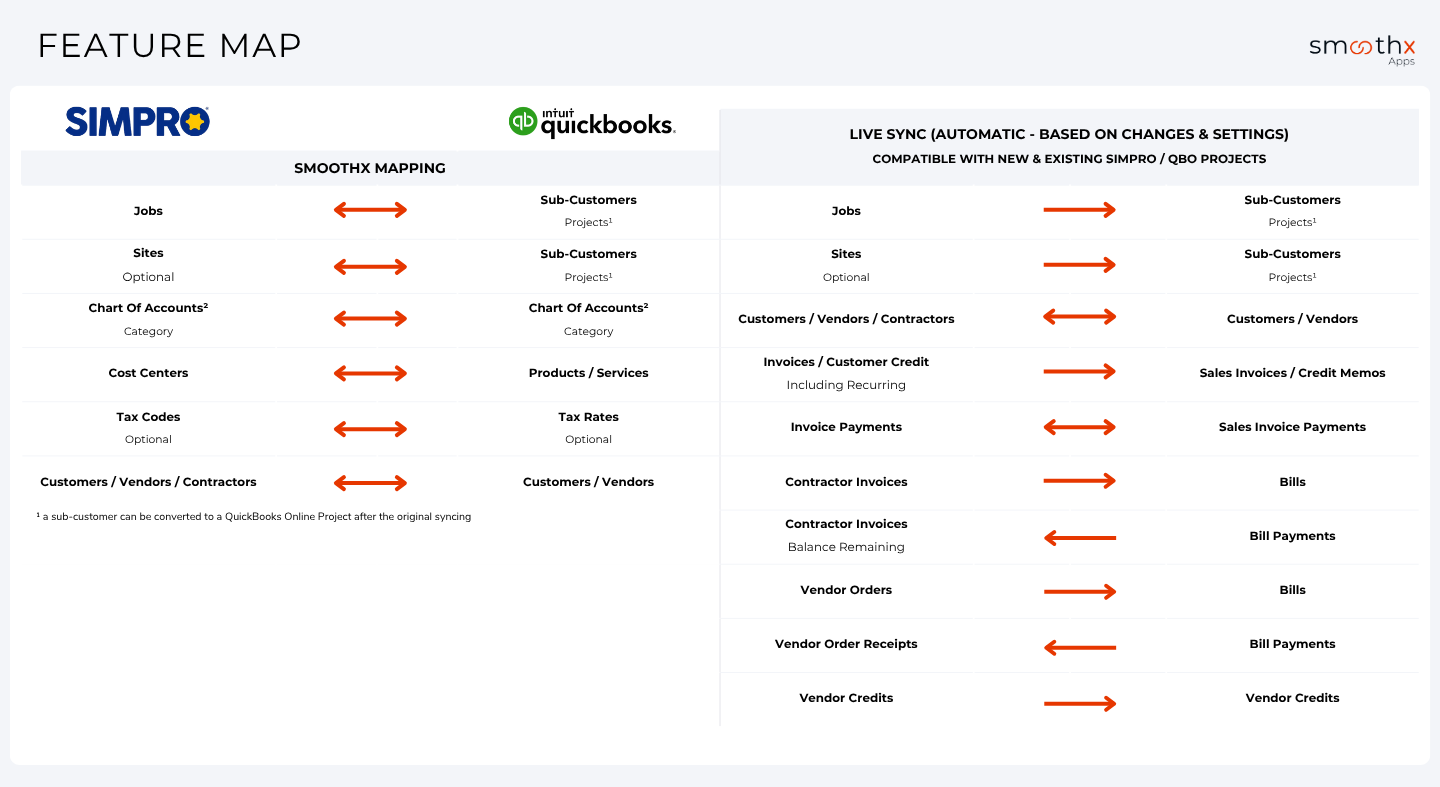 Smoothx’s QuickBooks Online integration delivers fast, two-way sync between Simpro and QuickBooks — including financial data, attachments, and customer details. No more double entry, switching tabs, or delays. Get real-time financial updates exactly where you work.