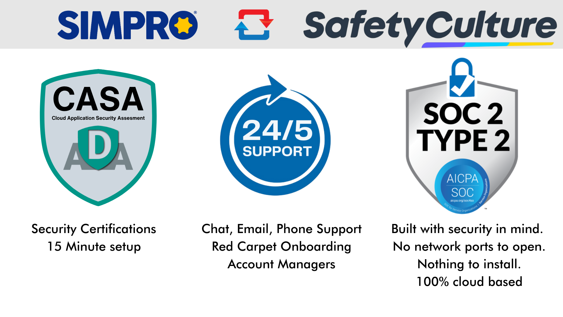 Integrating Simpro with SafetyCulture allows your field team to use SafetyCulture on the job efficiently while automatically updating Simpro back with the Inspection report.