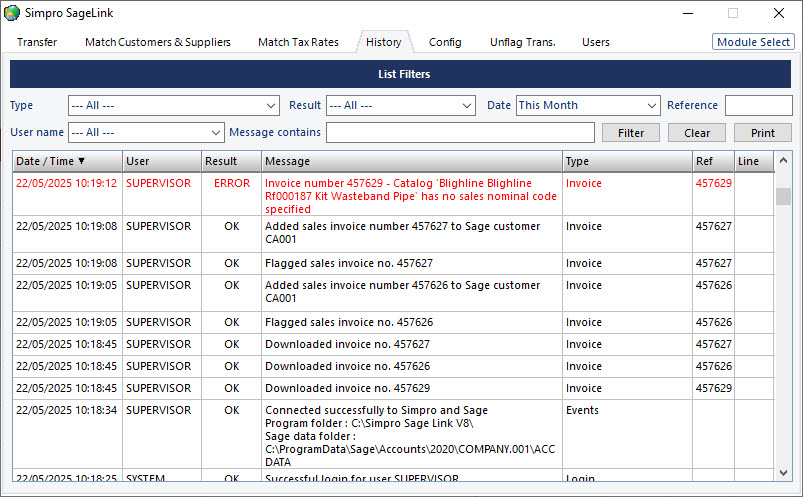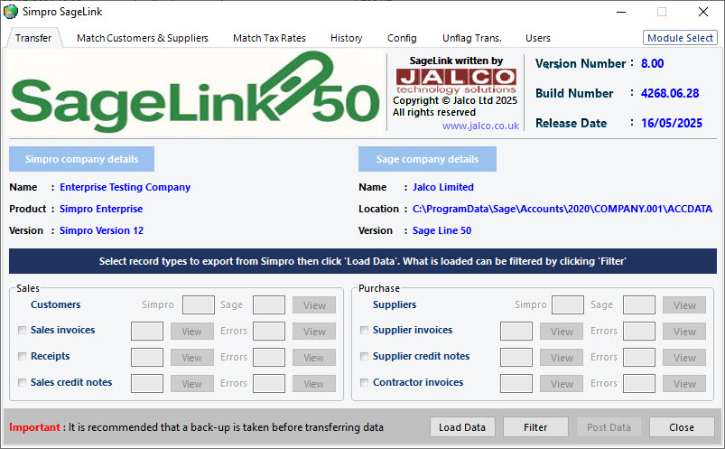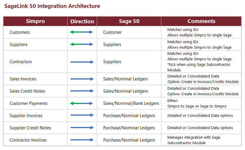 - Includes SageLink enhancements plus alignment with Simpro and Sage version releases.