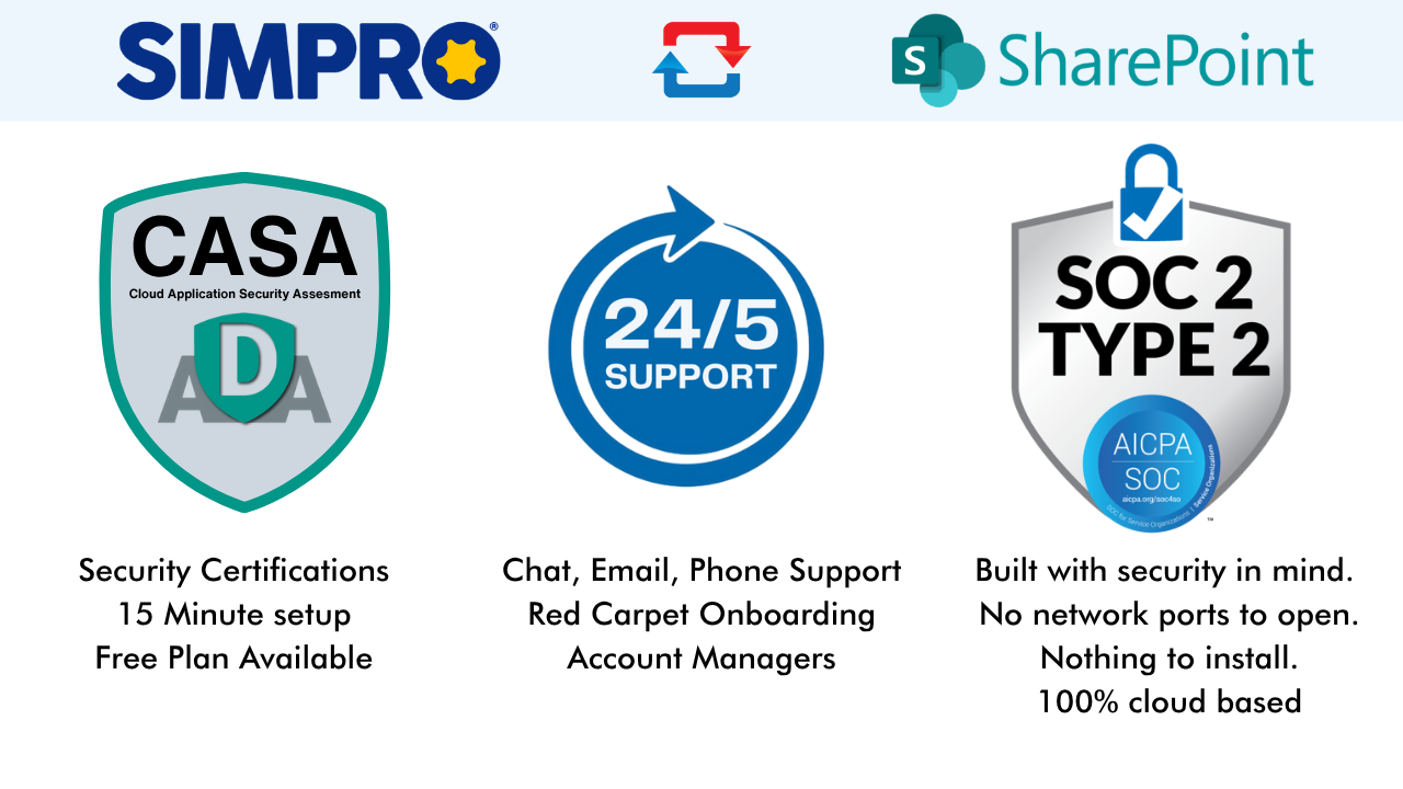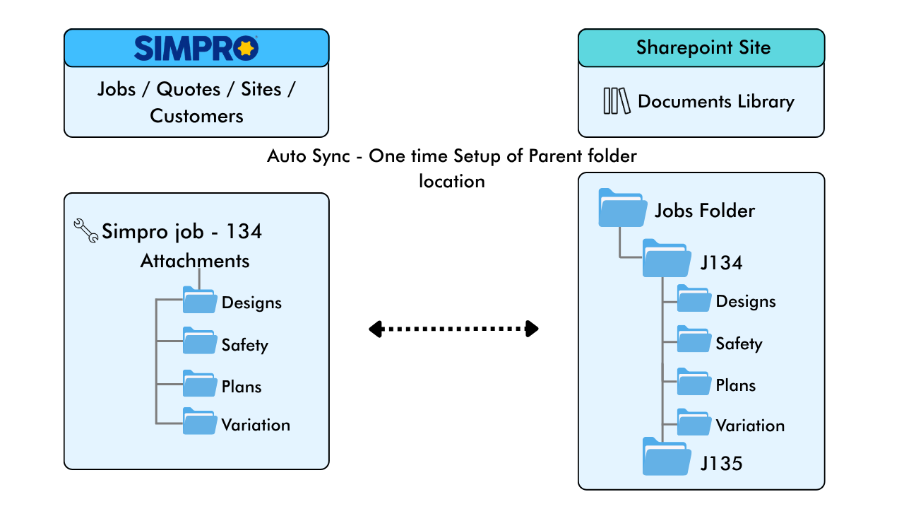 Automatically sync Simpro Attachments and folder structure into SharePoint / OneDrive and make it easier to access and edit documents and files from anywhere in Office 365.
