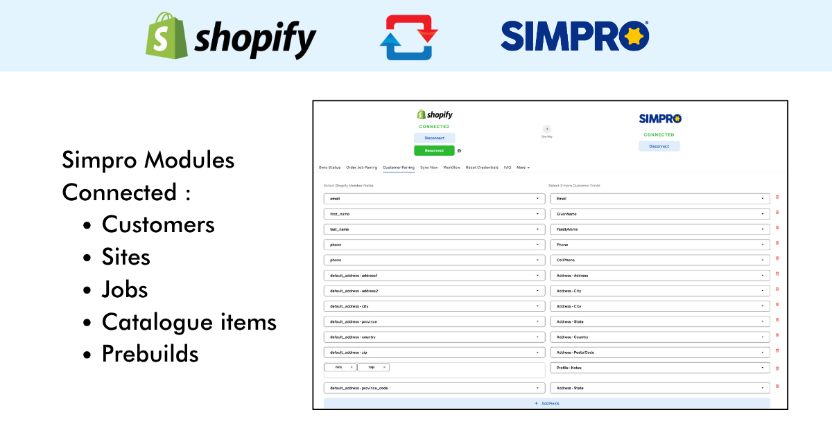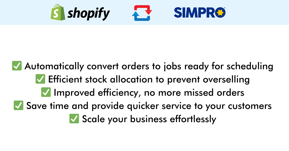 Integrating Shopify with Simpro automates order conversion into schedulable jobs, preventing missed orders and overselling, ensuring prompt fulfilment, and enhancing efficiency by reducing errors and delays.