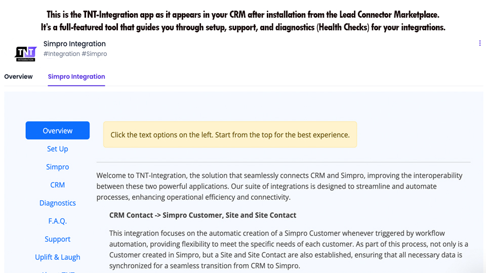 TNT-Integration helps tradies and service businesses work faster and avoid double-handling by automatically connecting Simpro with your LeadConnector / GoHighLevel CRM.