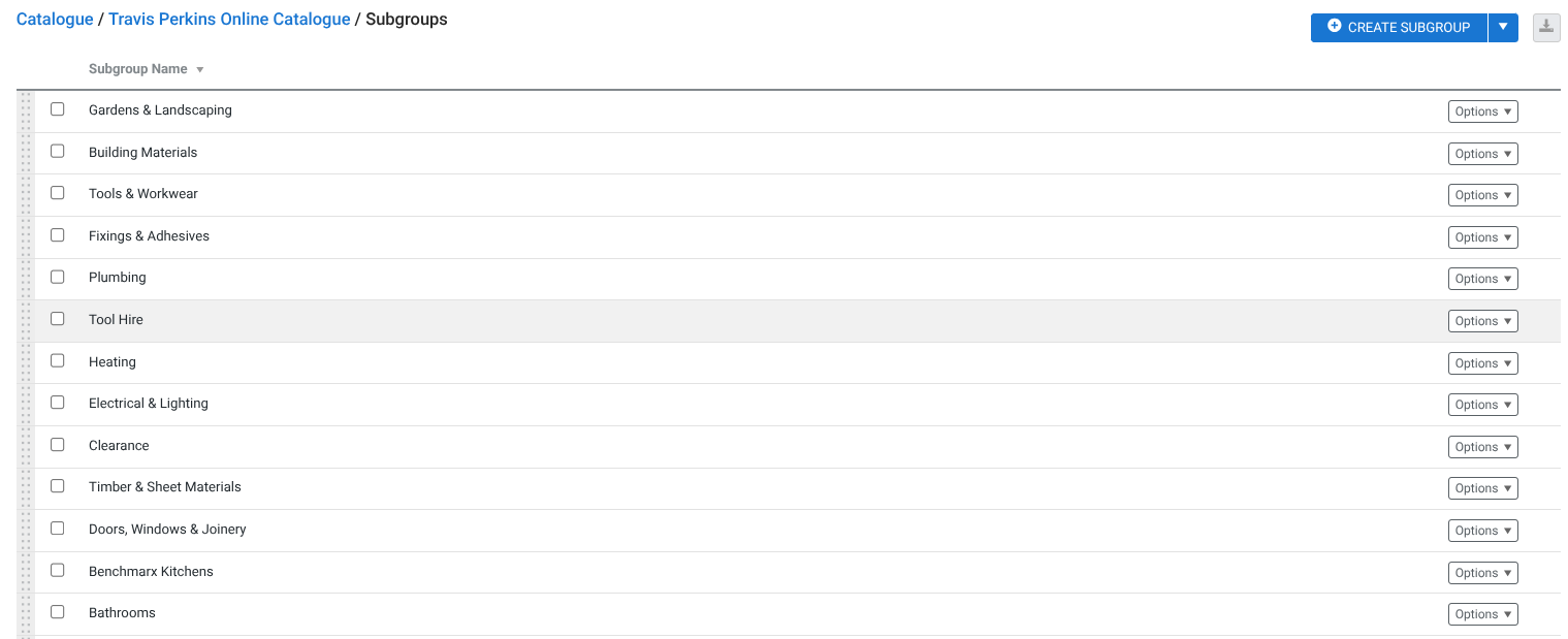 We use the same categories and sub-categories as Travis Perkins, so everything’s easy to find (e.g. Electrical & Lighting > Cable & Cable Management > Cable Drums)