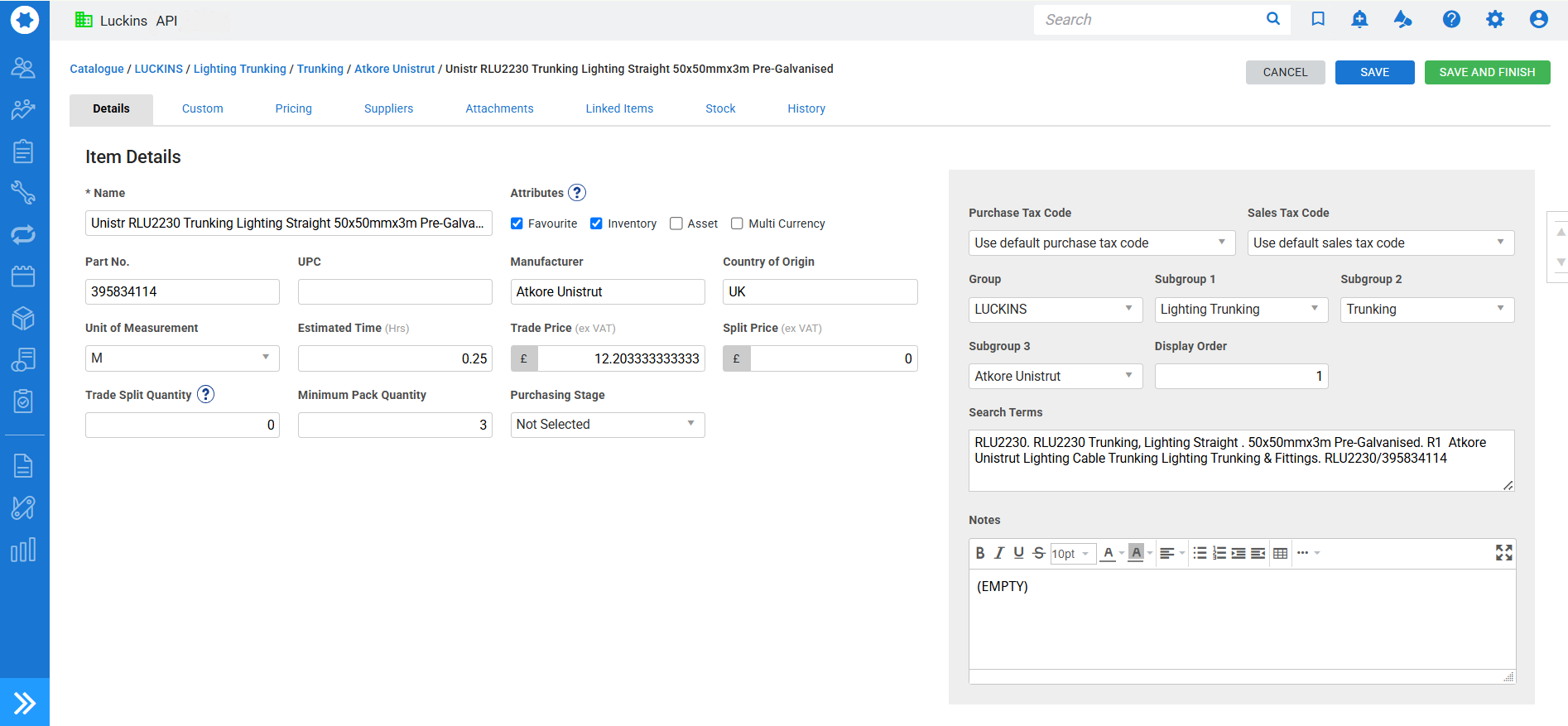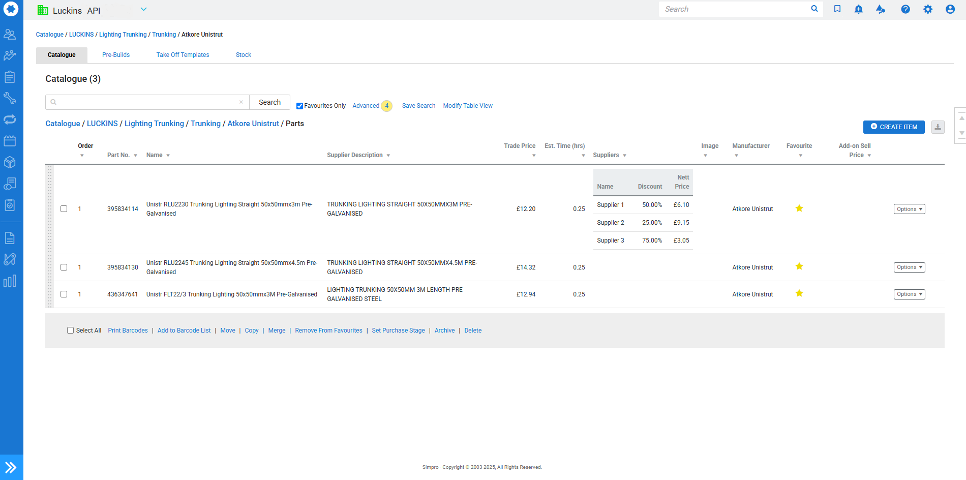 Rather than a static price file, the Luckins integration is a live API which means that it is always up-to-date. You'll be sure that your always using accurate information and you'll never estimate with an obsolete item. It also allows users to compare supplier pricing without having to jump across multiple catalogues.