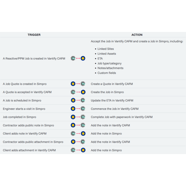 Sync jobs between Simpro and Vantify CAFM with a comprehensive and configurable two-way software integration from Ferrio. Stop wasting time double-keying the same info into two systems and deliver instantaneous updates to your clients.