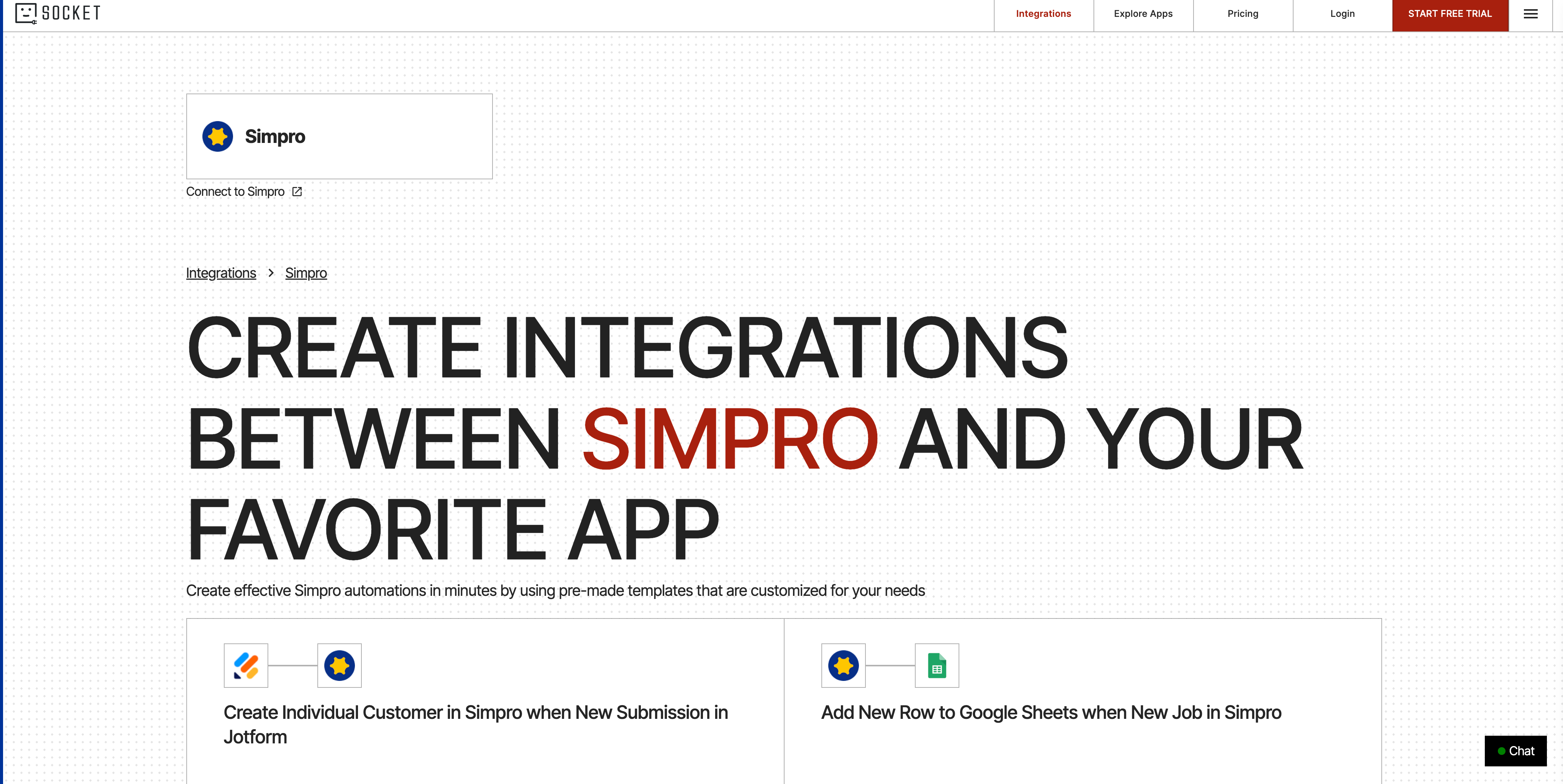 Build automated workflows between apps like Simpro, Google Sheets, Typeform, and HubSpot using a visual, no-code interface.