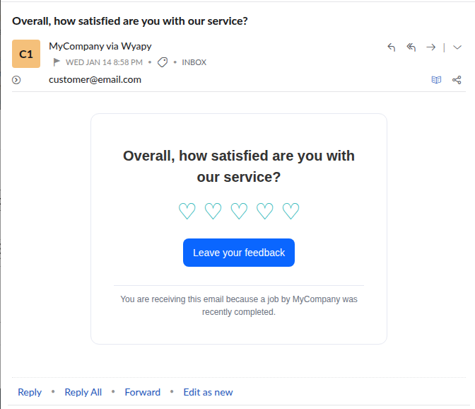Your customers will be able to provide their feedback that will be visible in your Wyapy dashboard and directly in your Simpro jobs.