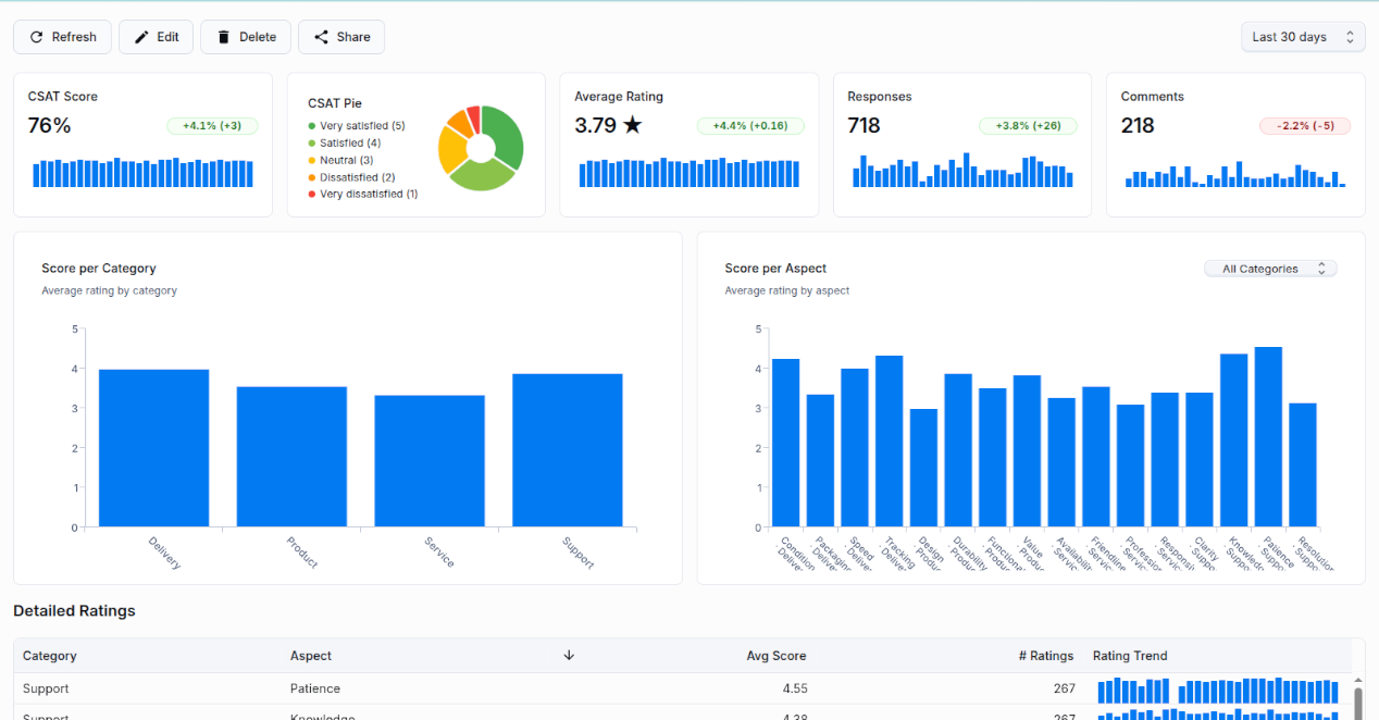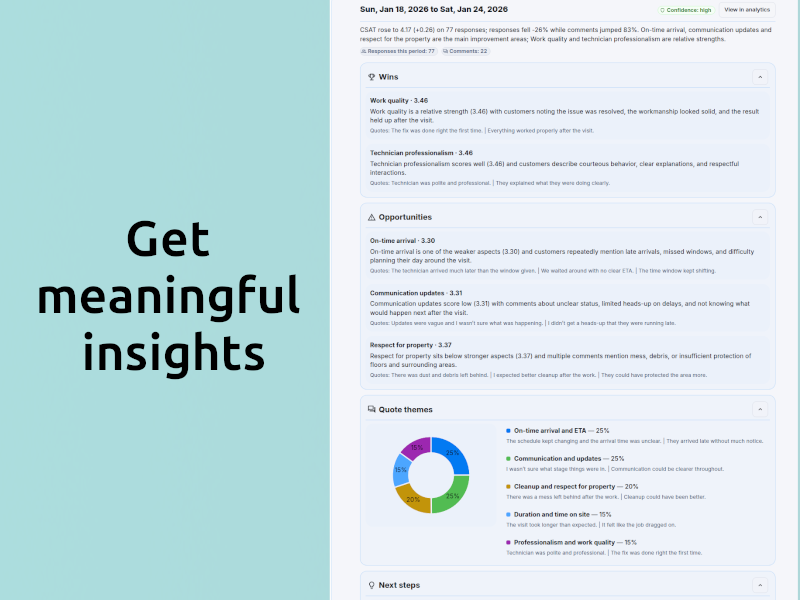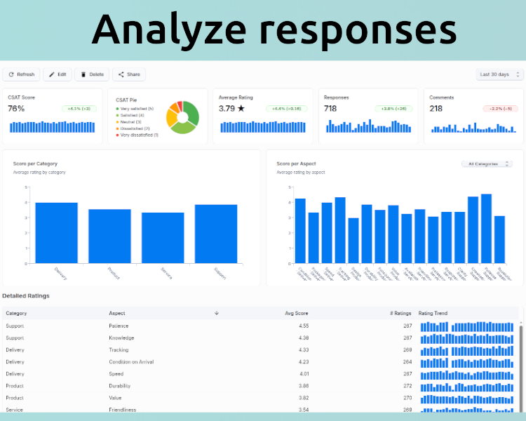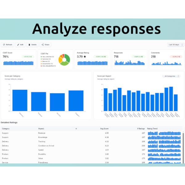 Wyapy's analytics dashboard goes beyond simple scores, offering in-depth trend analysis and detailed breakdowns to reveal what truly drives customer satisfaction.